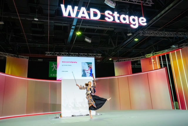 En avril 2025, à l'occasion de l'Exposition universelle d'Osaka, un événement d'ouverture a été organisé sur le site, suivi d'une réception donnée par les organisateurs à l'hôtel New Otani d'Osaka dans la soirée. Après une représentation de kabuki en ouverture, nous avons présenté une performance de calligraphie sur scène dans la deuxième partie. Cette fois-ci, comme il y avait des participants venus du monde entier, j'ai intégré des éléments japonais dans ma composition et j'ai écrit le mot « rêve » en référence à l'image du cerisier, symbole de la beauté du Japon, et au site de l'Exposition universelle, Yumeshima. Le gouverneur de la préfecture d'Osaka, M. Yoshimura, les consuls généraux de différents pays et l'ambassadrice du pavillon japonais, Mme Norika Fujiwara, qui assistaient au spectacle depuis les premiers rangs, nous ont fait part de leurs impressions : « Nous avons été captivés du début à la fin ! » « C'était une très belle performance ! »